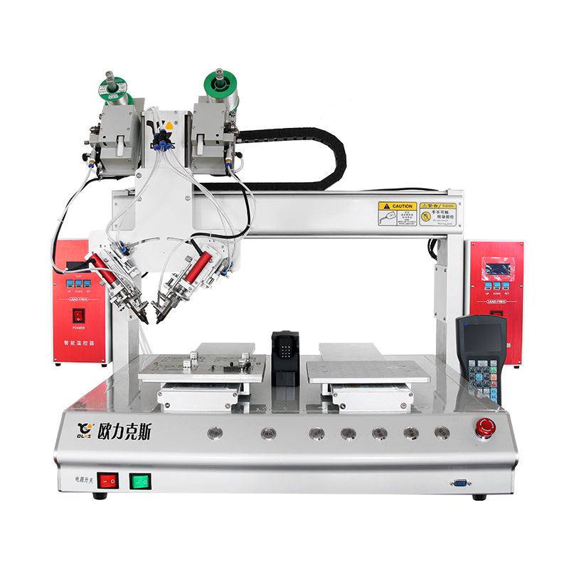 深圳焊錫機廠家歐力克斯雙頭雙工位雙氣缸斜插式焊錫機,電源主板焊錫專用,平臺式自動焊錫機,采用高配置核心配件:氣缸、溫控盒,發(fā)熱芯,清洗盒,萬向模組,破錫機,導軌等